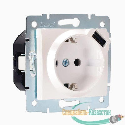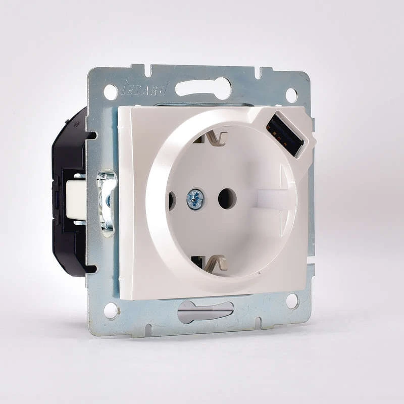 707-3088-181 LEZARD | Механизм розетки 1-м СП KARINA 16А с з/к + USB разъем жемчуж./бел. перламутр LEZARD 707-3088-181