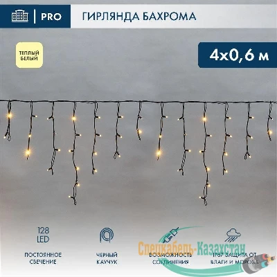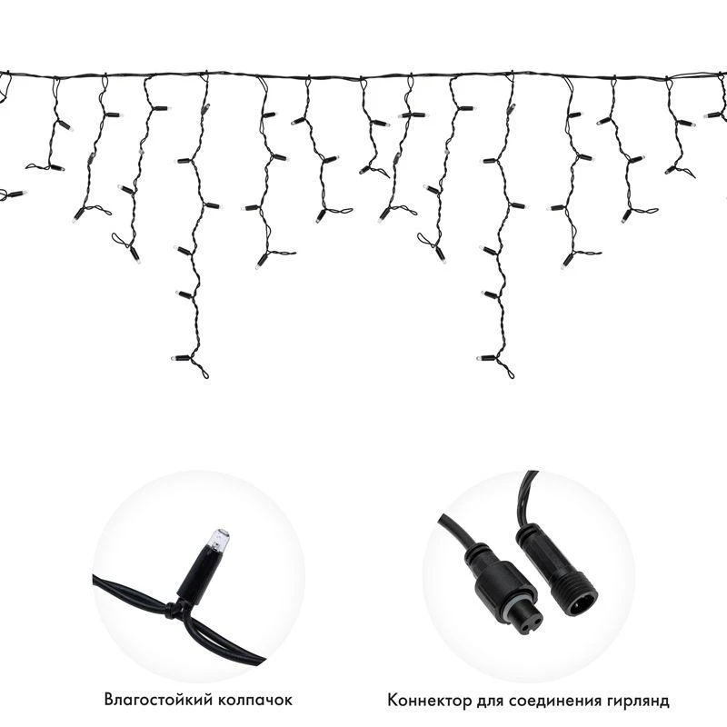 255-226-6 Neon-Night | Гирлянда светодиодная "Айсикл" (бахрома) 4х0.6м 128LED тепл. бел. 230В IP67 черн. провод 2.3мм (нужен шнур питания 315-000) Neon-Night 255-226-6