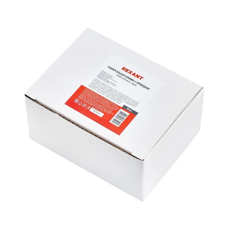 Клемма строительно-монтажная СМК 222-412 2-проводная 0.08-2.5/4кв.мм сер. (уп.50шт) Rexant 07-5252-4