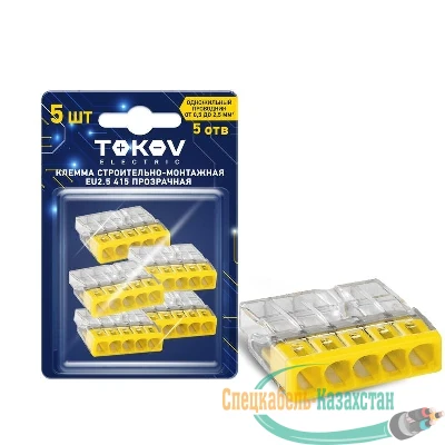 Клемма строительно-монтажная СМК 2273-205 EU2.5 415 5-проводная прозр. (блист.5шт) TOKOV ELECTRIC TKE-EU2.5-415/BL5