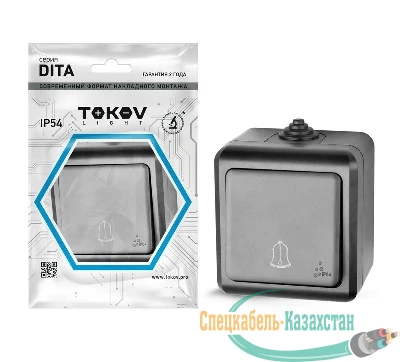Кнопка звонка ОП Dita IP54 10А 250В карбон TOKOV ELECTRIC TKL-DT-DB-C14-IP54