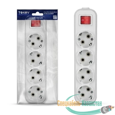 Колодка удлинителя 4-м 16А с заземл. с выкл. АБС-пластик бел. TOKOV ELECTRIC TKE-C01-KU4-ZV