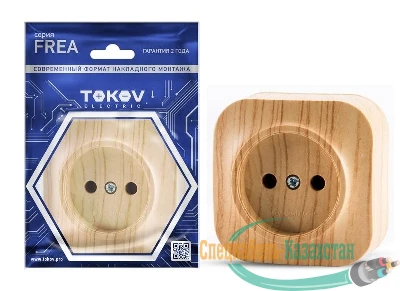Розетка 1-м ОП Frea 16А IP20 250В без заземл. АБС-пластик сосна TOKOV ELECTRIC TKE-FR-R1-C25