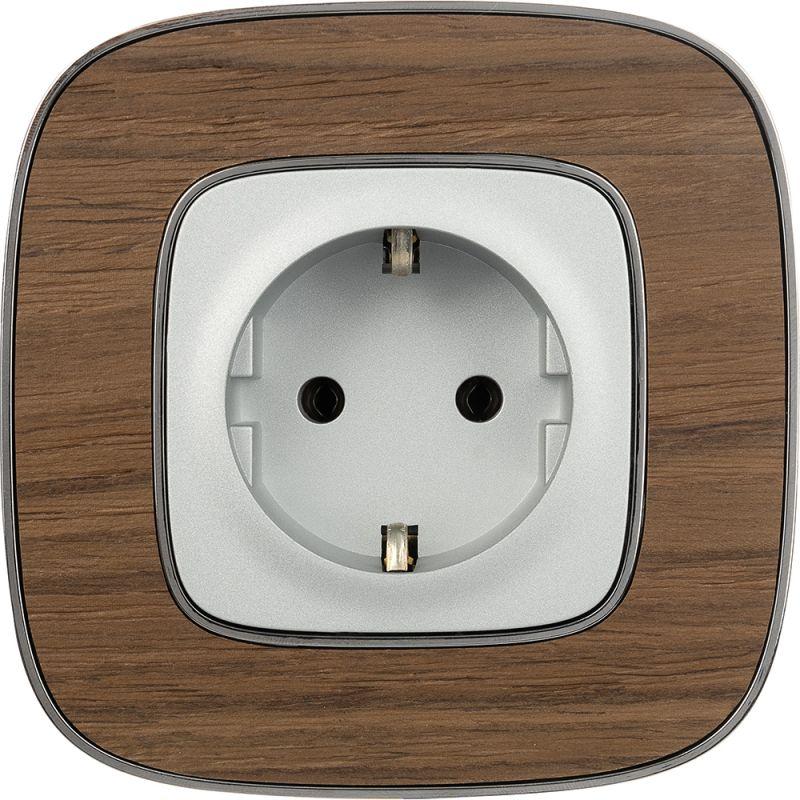 Розетка 1-м СП Valena Allure 16А IP2X 250В 2P+E безвинтов. клеммы с лицев. панелью механизм алюм. Leg 753921
