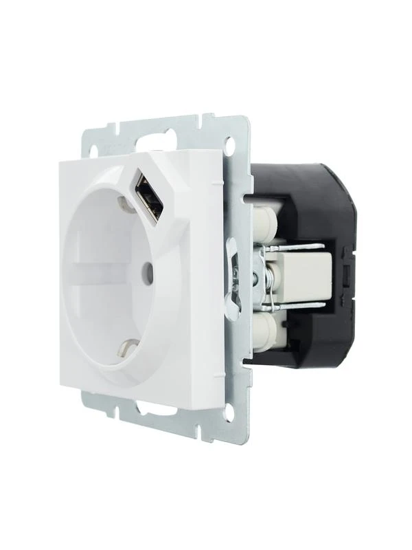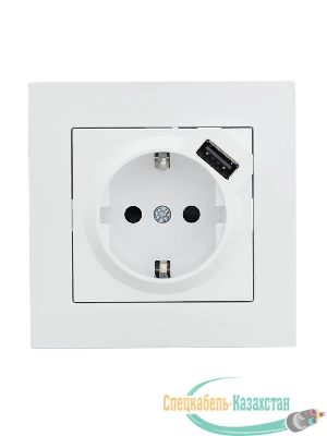 742-0288-181 LEZARD | Розетка 1-м СП Vesna с заземл. с заряд. устройством USB механизм бел. LEZARD 742-0288-181