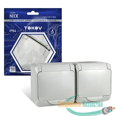 Розетка 2-м ОП Nix 16А IP54 250В с заземл. с крышкой сер. TOKOV ELECTRIC TKE-NX-R2Z-C06-IP54