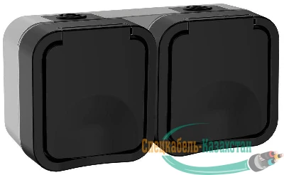 Розетка 2-м ОП TORS 16А IP55 TS122 горизонт. с заземл. с крышкой графит IEK TS-R26-16-55-G-K53