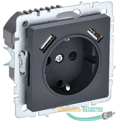Розетка BRITE РЮш10-1-БрГ 16А с USB A+A 2.1А с заземл. защ. шторки механизм графит IEK BR-R14-16-U21-D21-K53