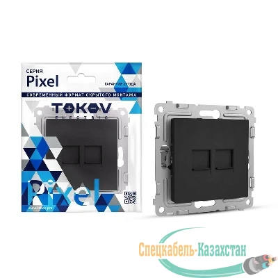 Розетка компьютерная 2-м СП Pixel RJ45 кат.5E механизм карбон TOKOV ELECTRIC TKE-PX-RC2-C14