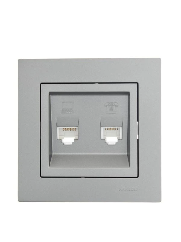 Розетка компьютерная + телефонная 2-м СП Vesna механизм платина LEZARD 742-3588-143