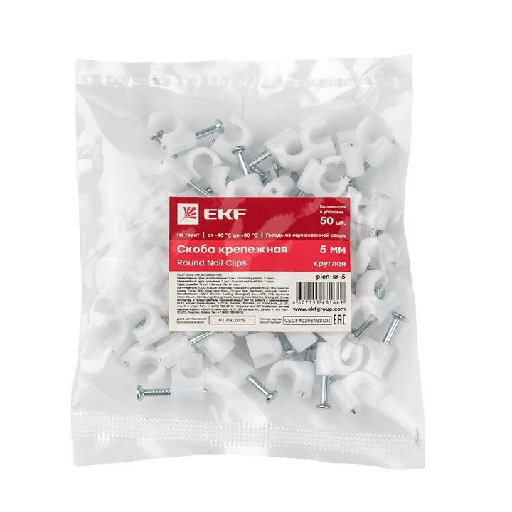 Скоба крепежная круглая с гвоздем d5мм пластик. (уп.50шт) EKF plcn-sr-5