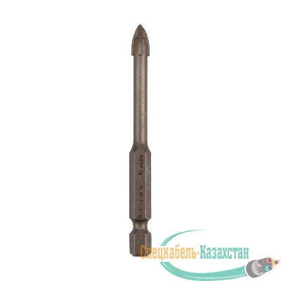 Сверло по стеклу и керамике 6мм 4 грани шестигранный хвостовик Kranz KR-91-0649