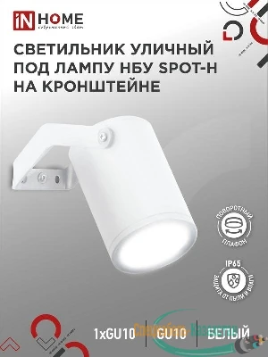 Светильник SPOT-HW IP65 230В под лампу GU10 НБУ уличный на кронштейне алюм. бел. IN HOME 4690612049120