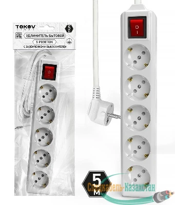 TKL-C01-BU5-5-1.5-ZV TOKOV LIGHT | Удлинитель 5х5м с заземл. с выкл. 10А 3х1.5 TOKOV LIGHT TKL-C01-BU5-5-1.5-ZV