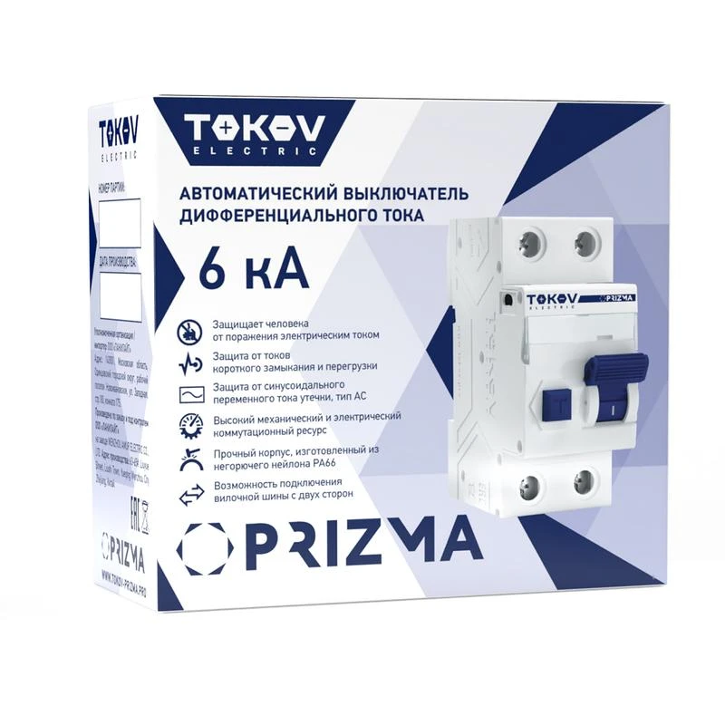 Выключатель автоматический дифференциального тока 2П (1P+N) 50А 300мА тип AC 6кА хар-ка C TOKOV Electric TKE-PZ60-RCBO-2-50-300-AC