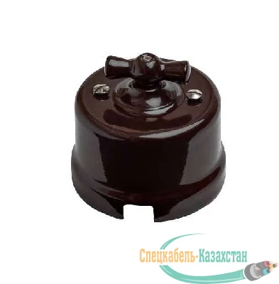 Выключатель проходной поворотный 1-кл. ОП Лизетта 10А IP20 ретро 2 полож. керамика корич. Bironi B1-201-02